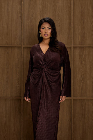 Curve Statement Flutter sleeve velvet ruffle hem maxi dress