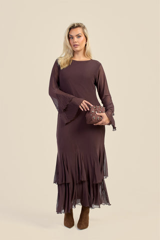 Curve knitted button front long sleeve midaxi jumper dress in Camel