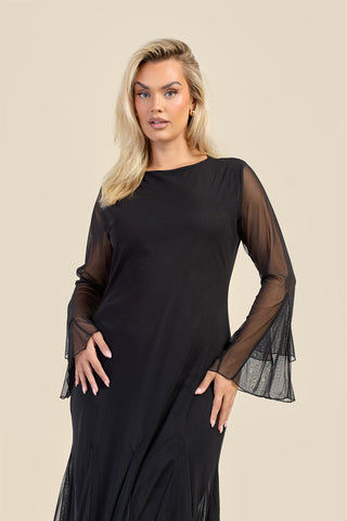 Curve knitted button front long sleeve midaxi jumper dress in Black