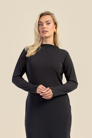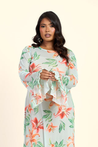 Curve Lily Print Long Sleeve Ruffle Swing Maxi Dress