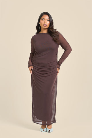 Curve Leopard Print Drop Shoulder Mesh Midi Dress