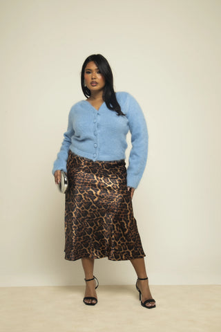 Curve Leopard Print Trim Detail Flare Sleeve Midi Dress