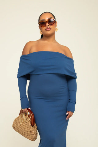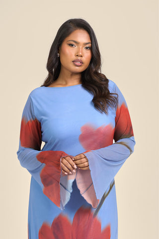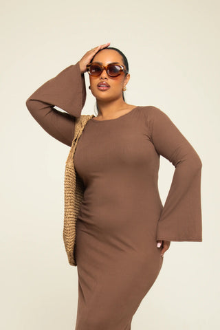 Curve Soft Rib Flare Sleeve Maxi Dress