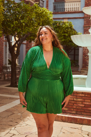 FASHION SZN X ASHLEIGH HUISH Balloon sleeve plisse playsuit in bright green
