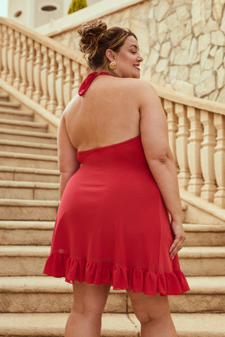 FASHION SZN X ASHLEIGH HUISH Ruffle mini dress with corsage in Red