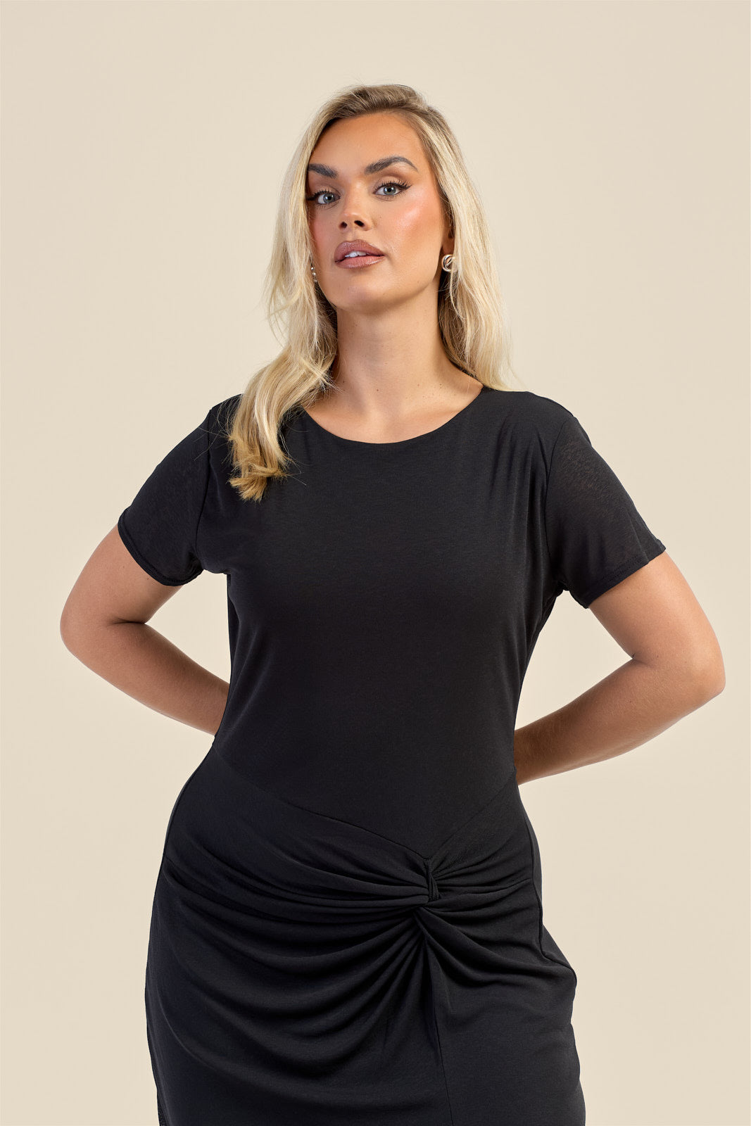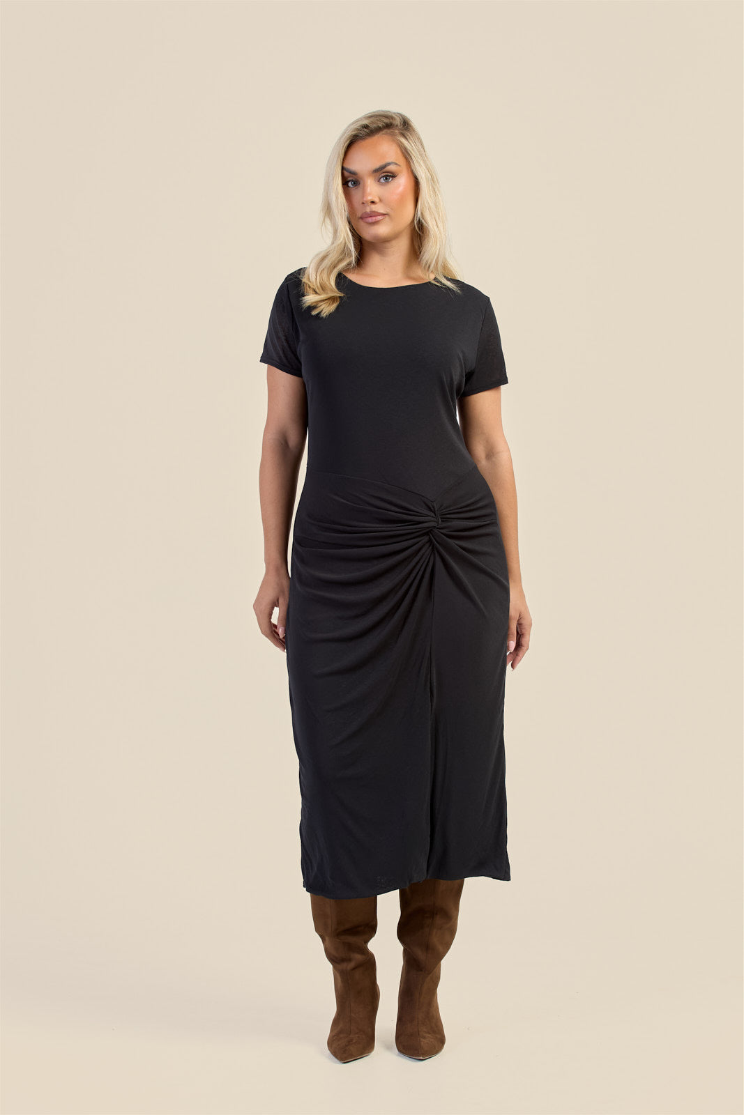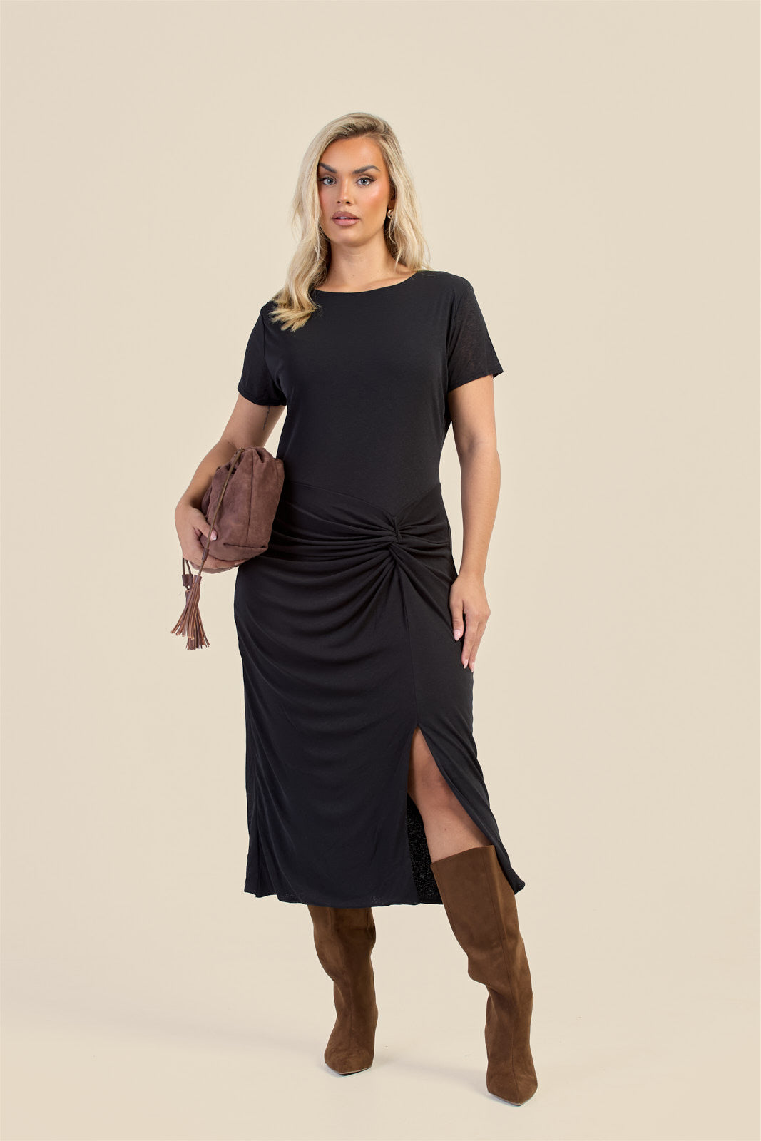 Step out in style with the Curve Textured Knit Knotted Front Midi Dress. Its playful knot detail adds a fun twist to the flattering textured knit fabric, hugging your curves in all the right places. Perfect for any occasion, this midi dress blends comfort and chic effortlessly—get ready to turn heads and feel fabulous all day long!