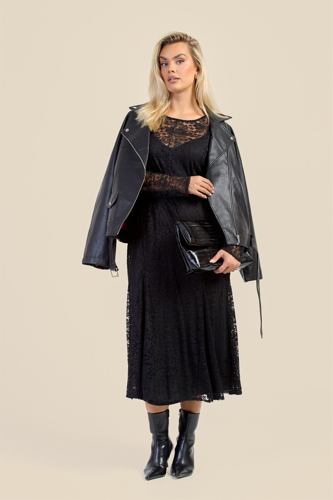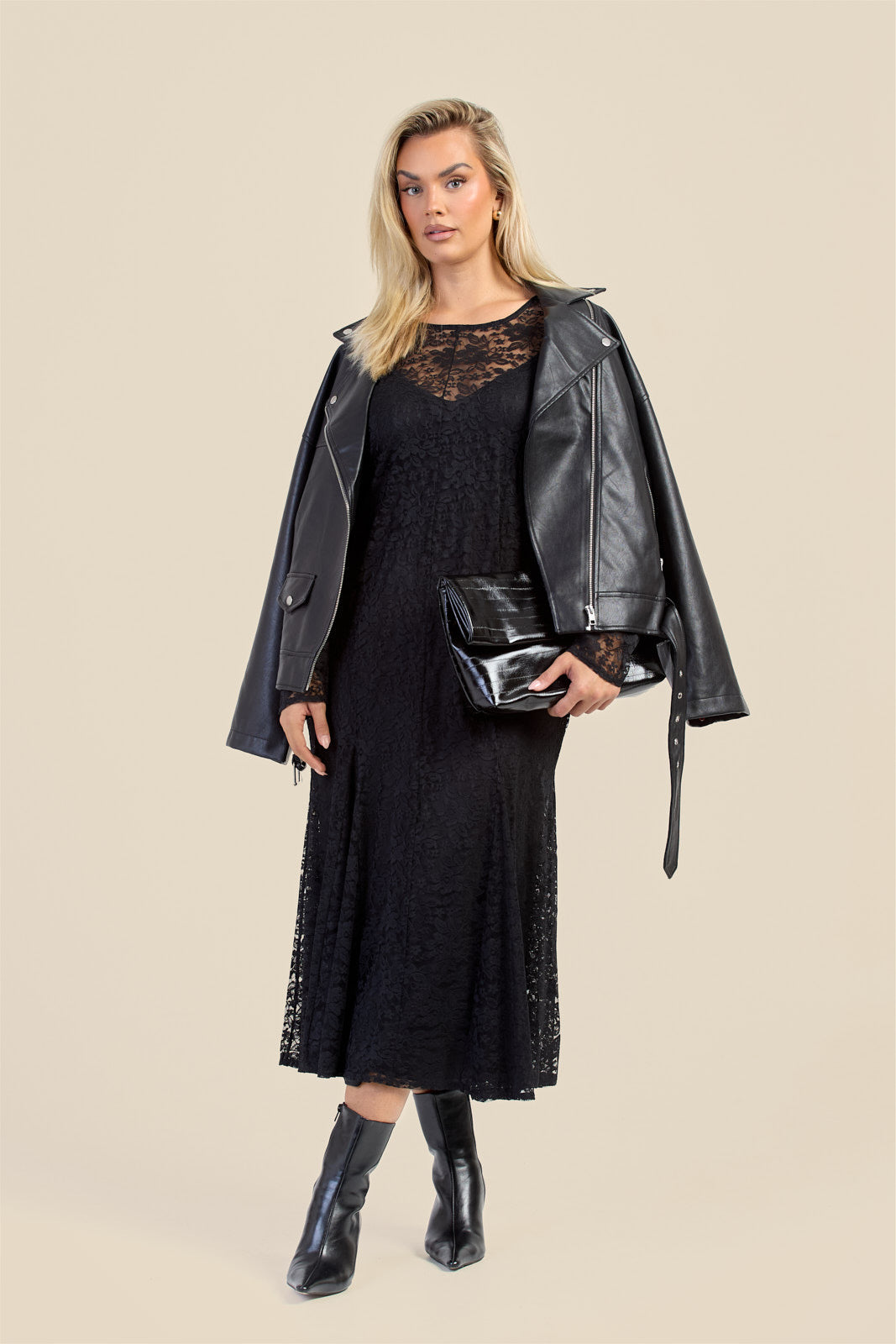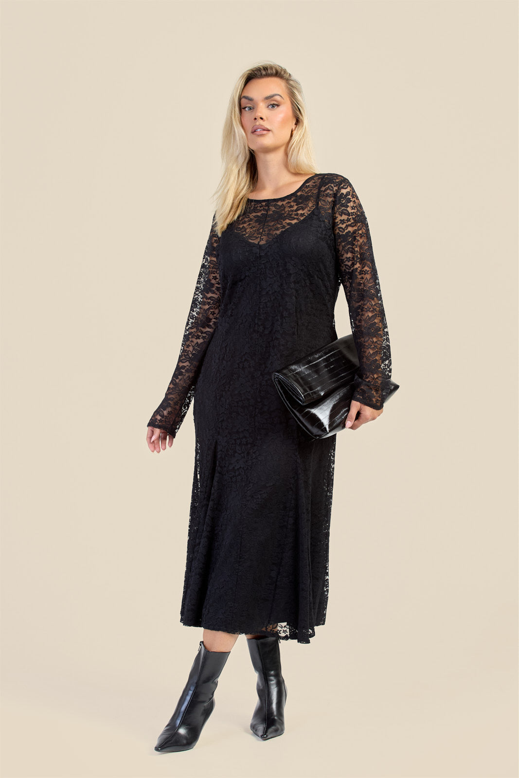 Step into whimsy with this Curve Long Sleeve Lace Godet Hem Midaxi Dress. Delicate lace and flirty godet hems dance together to create a playful silhouette that flatters every curve. Perfect for twirling through your day or night, its midaxi length strikes just the right balance of fun and elegance. Embrace effortless charm wherever you go!