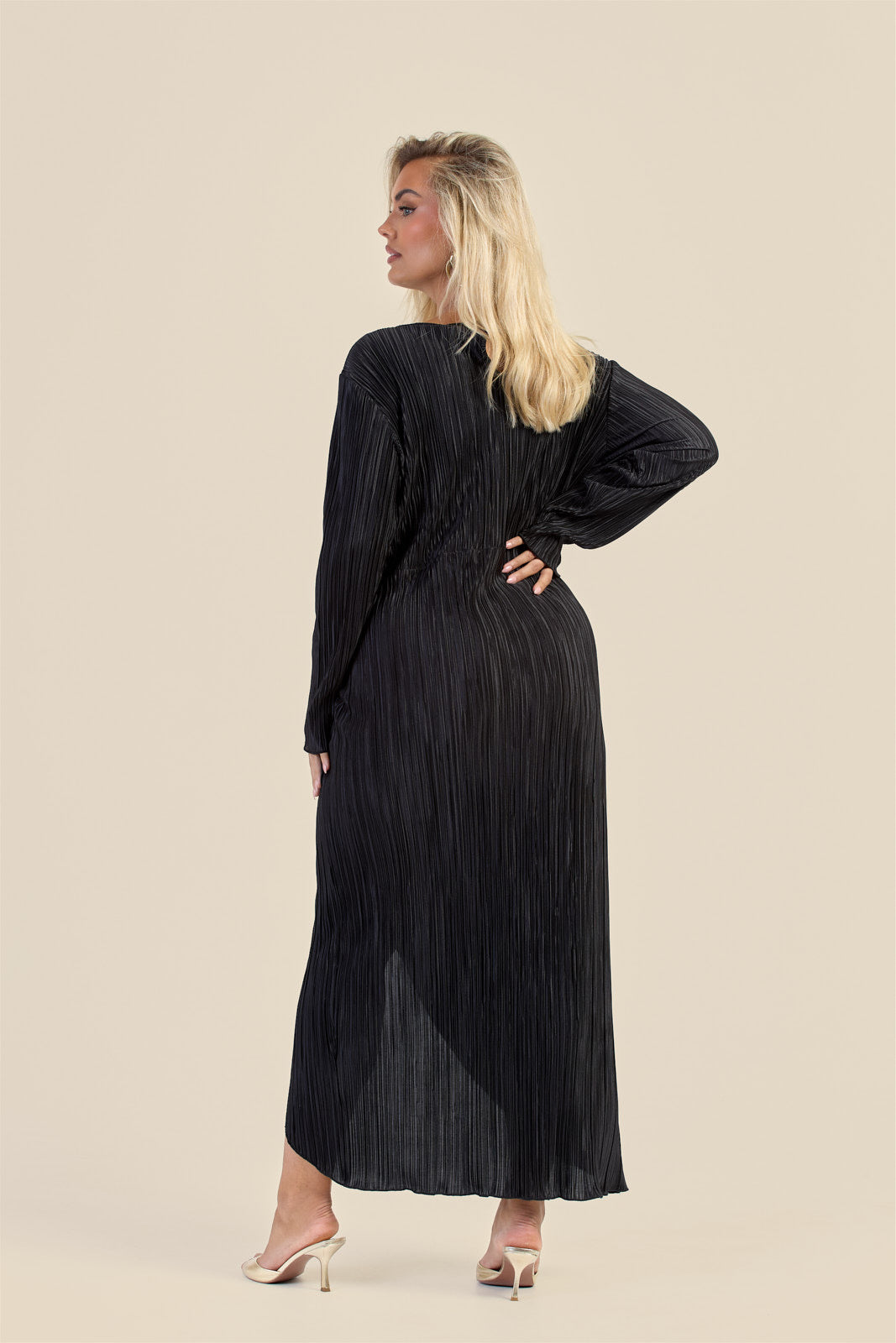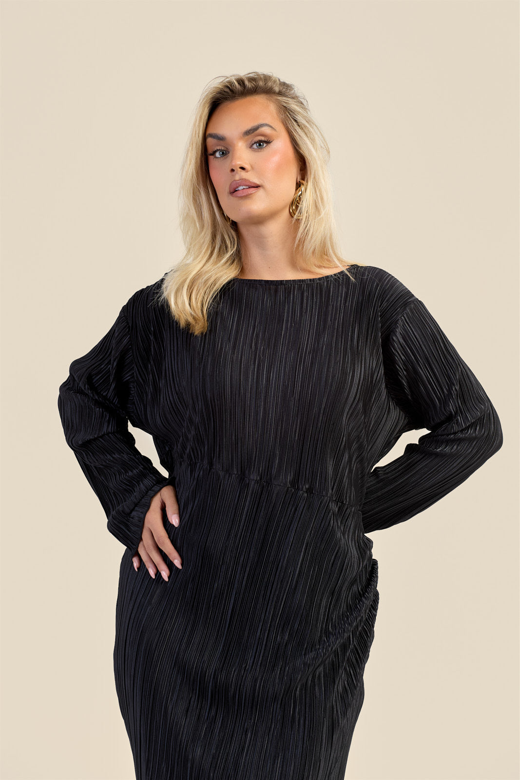 Breathe new life into your wardrobe with our super sophisticated Curve Ruched Front Long Sleeve Black Plisse Midaxi Dress. This LBD (little black dress) is a must-have for any wardrobe, adding elegance and style to any occasion. With its ruched front and long sleeves, you'll feel classy and confident in any setting.