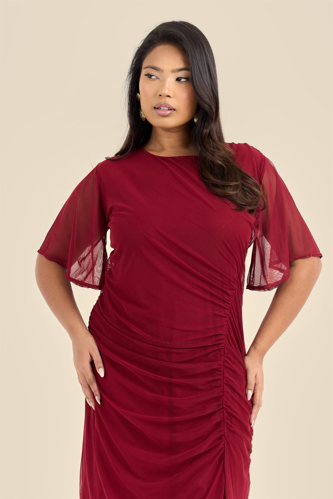 Embrace your curves in this stunning ruched mesh midaxi dress designed for the fuller figure. The dramatic angel sleeves add a touch of ethereal glamour, while strategic ruching flatters your silhouette beautifully. Perfect for nights out, special occasions, or whenever you want to feel absolutely fabulous. The flowing midaxi length offers elegance with comfort, giving you that show-stopping moment without compromising on ease. Slip into confidence and let your style do the talking.