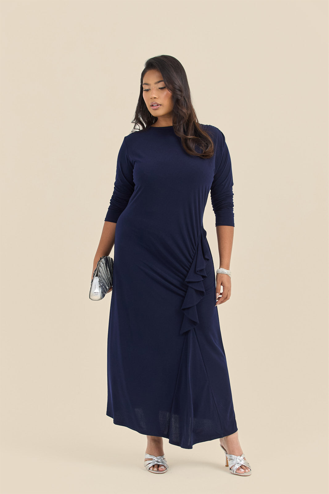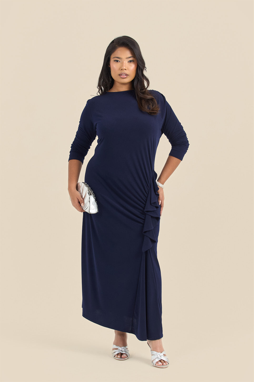 Embrace effortless elegance with this Plus Size Ruffle Side Midi Dress—a playful take on timeless style. The charming ruffle detailing along the sides adds movement and dimension, while the midi length offers versatile wear from day to night. Designed for confident curves, this dress celebrates your silhouette with flattering proportions and comfortable wear.