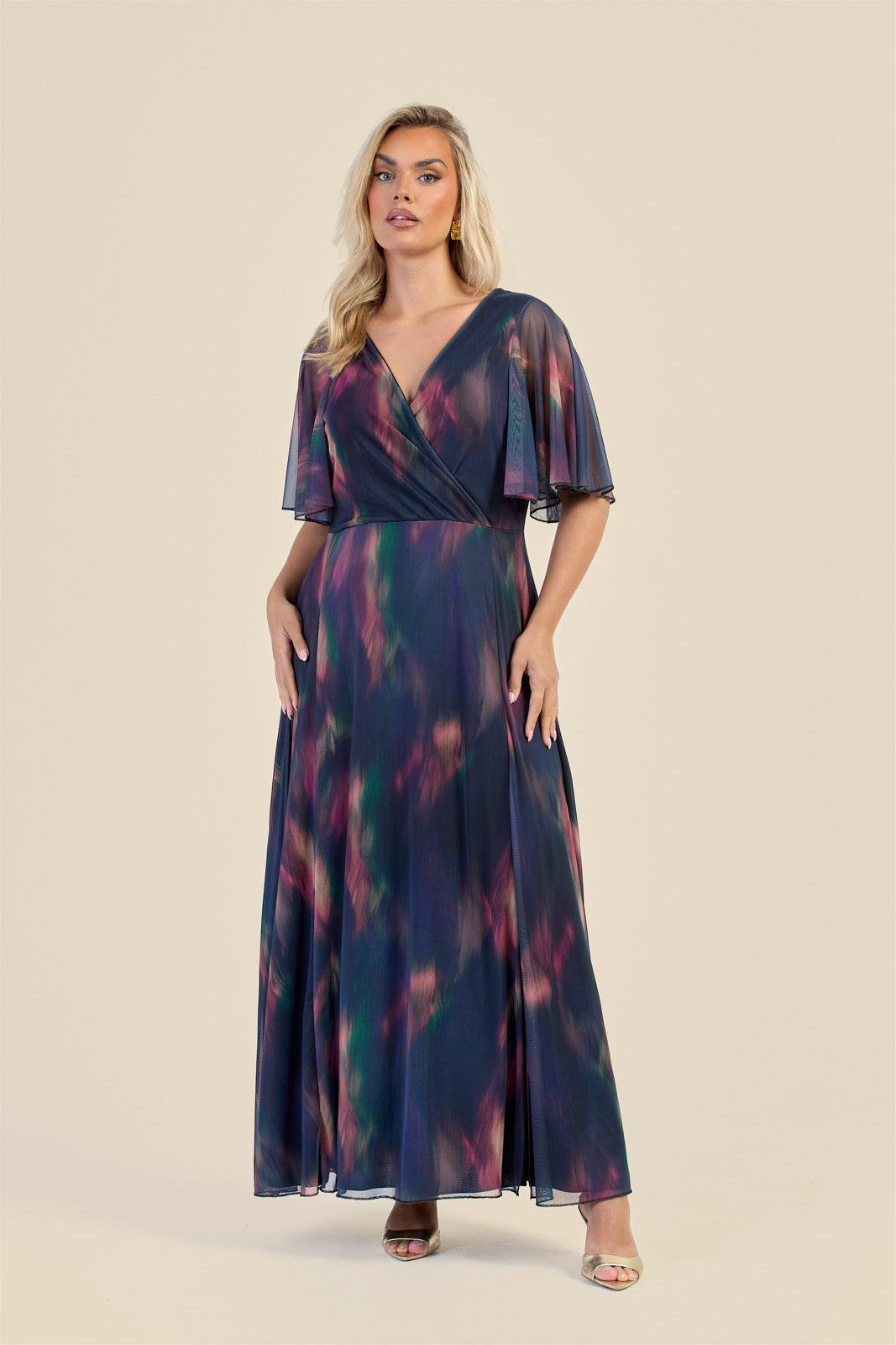 Embrace elegance with a splash of fun in this Curve Dark Water Colour Wrap Front Maxi Dress. Its flowing angel sleeves and flattering wrap front create a graceful silhouette, while the dark watercolour pattern adds a whimsical twist. Perfect for twirling through your day or sparkling at evening events, this dress blends comfort with captivating style effortlessly.