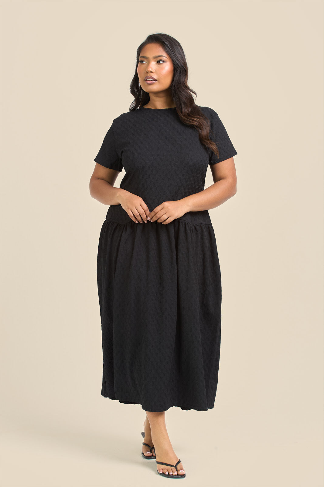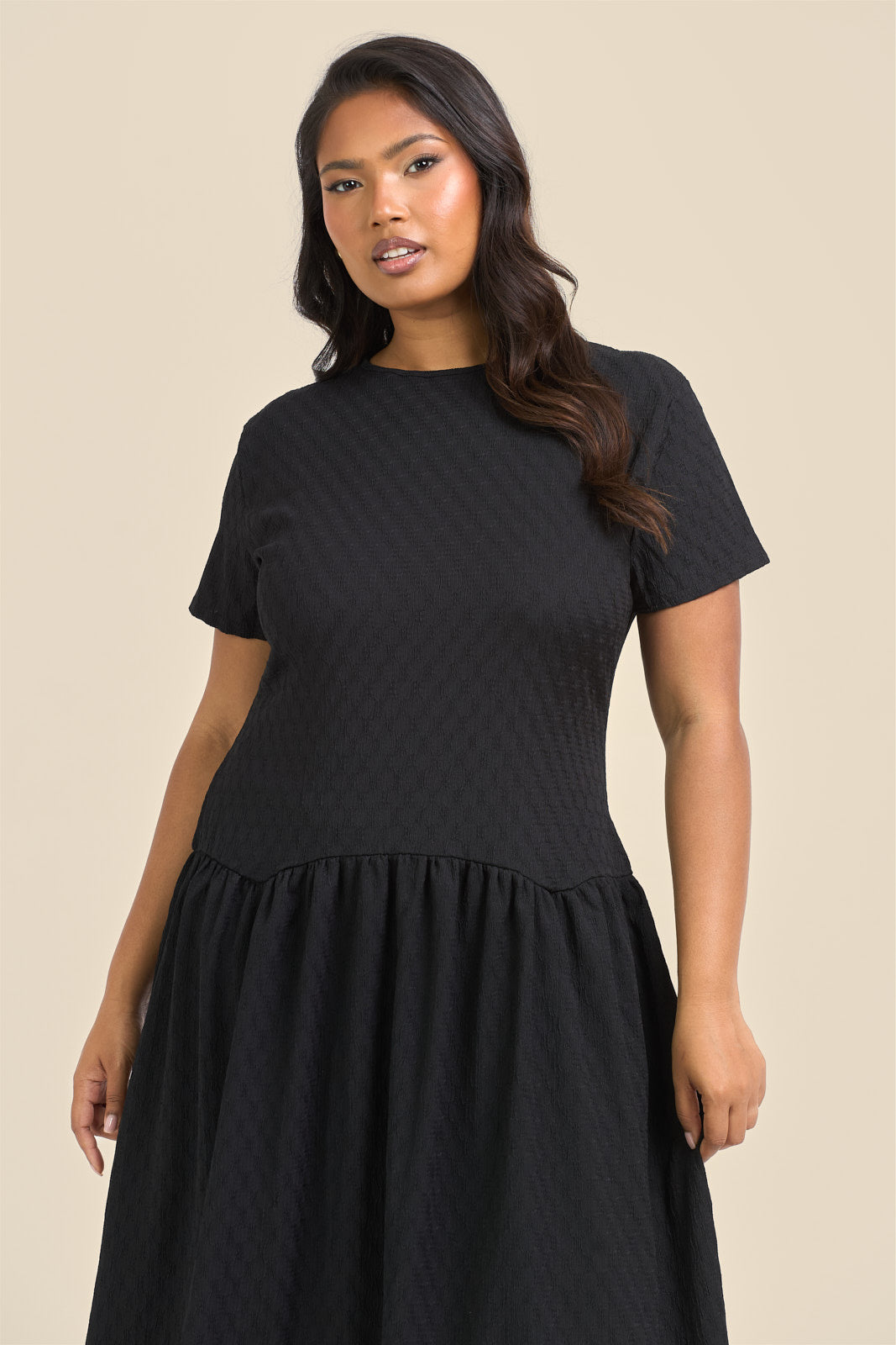 Step out in style with the Plus Size Textured Drop Waist Smock Dress, designed to bring fun and flair to your wardrobe. Its playful drop waist silhouette adds a flirty twist, while the textured fabric gives every movement a lively touch. Perfect for days when you want to feel effortlessly chic and comfortable, this is the go to plus size dress