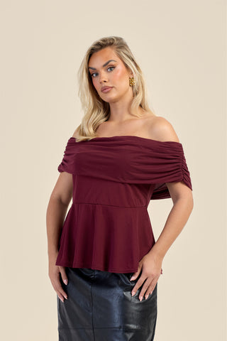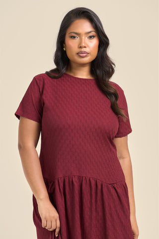 Curve Plum Textured Flutter Sleeve Ruched Front Midi Dress