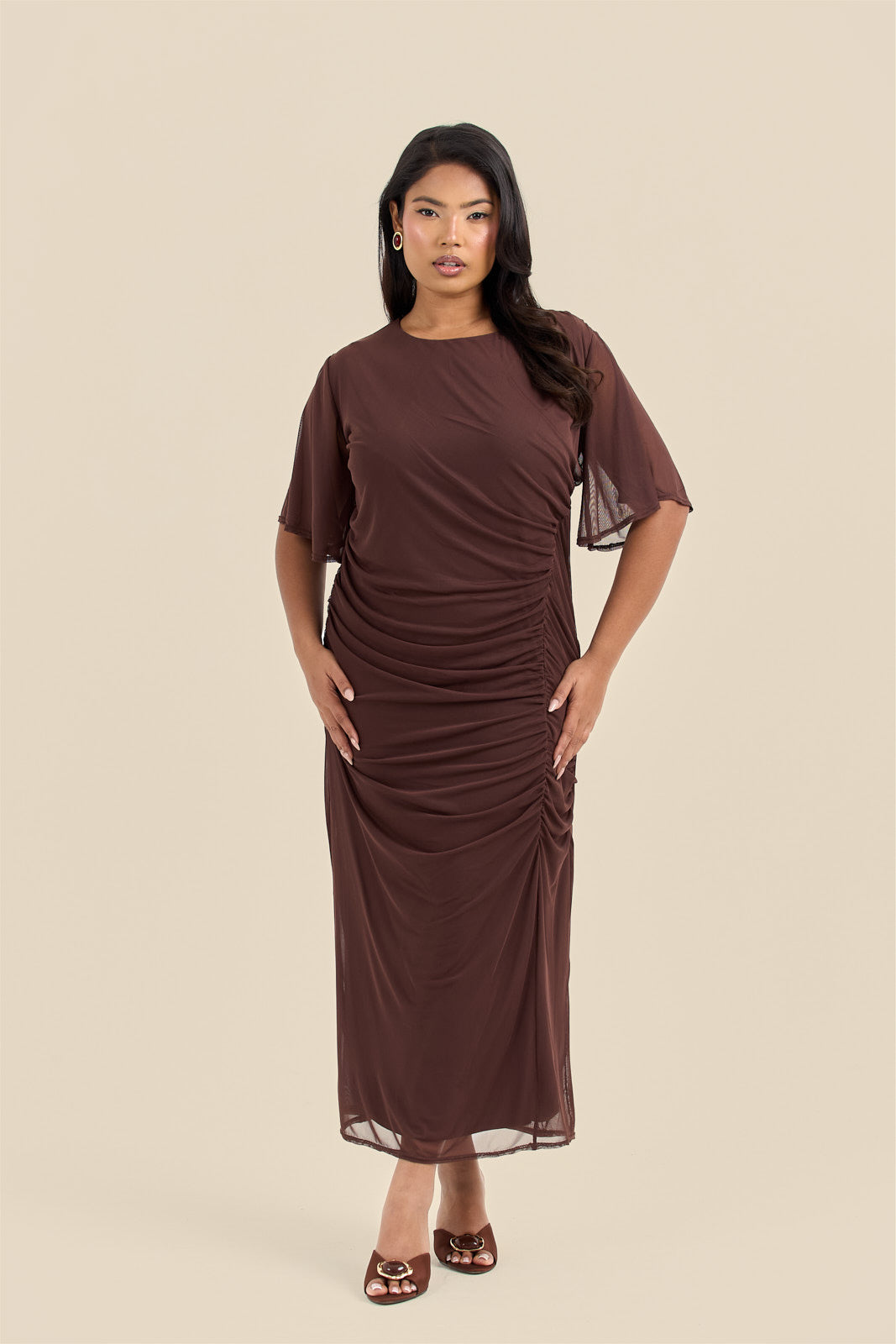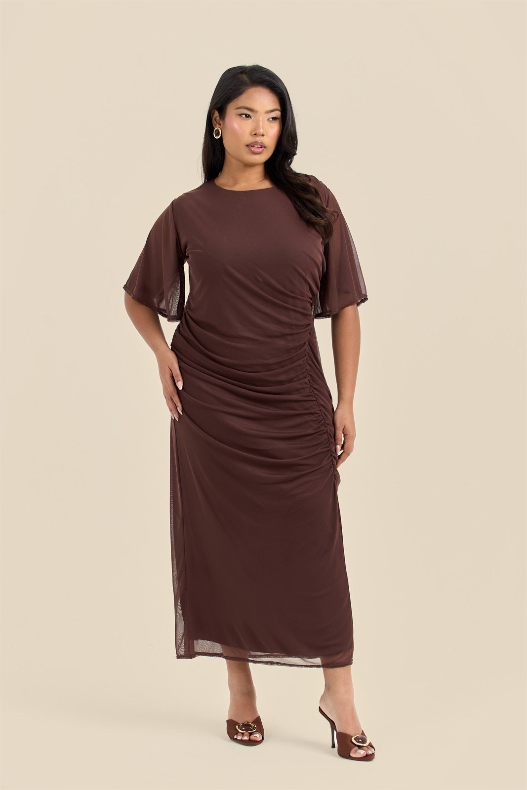 Slip into effortless elegance with this stunning plus-size midi dress, designed to celebrate every curve. The flattering ruched detailing sculpts and smooths, while the dreamy angel sleeves add a touch of whimsy and movement. Perfect for date nights, celebrations, or whenever you want to feel absolutely fabulous. This is the dress that makes you feel like the best version of yourself—comfortable, confident, and undeniably gorgeous.