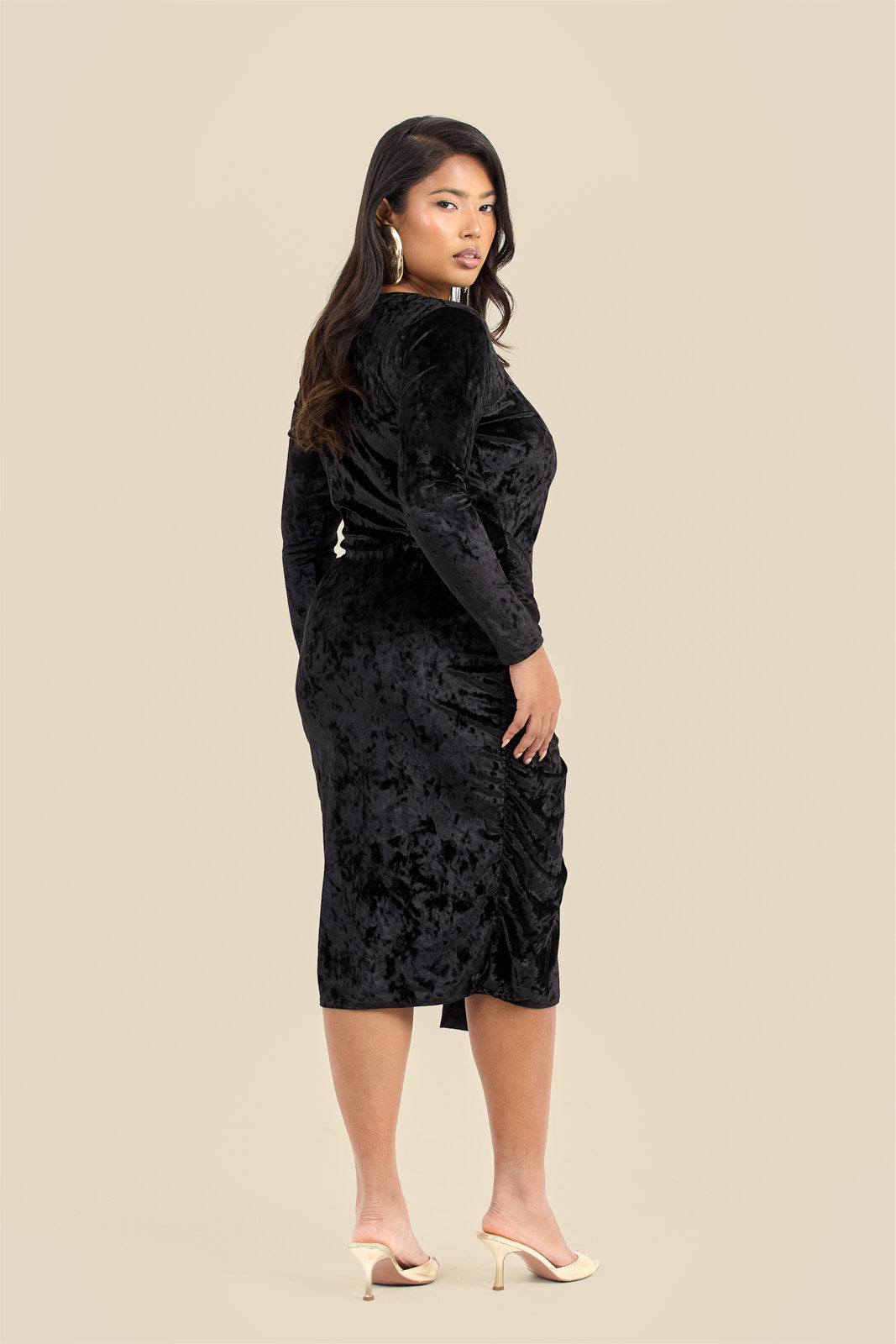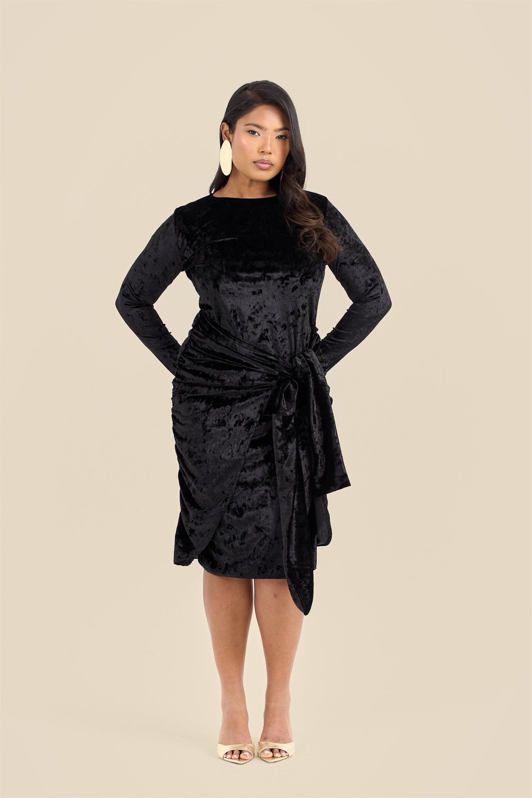 Curve crushed velvet tie front draped midaxi dress
