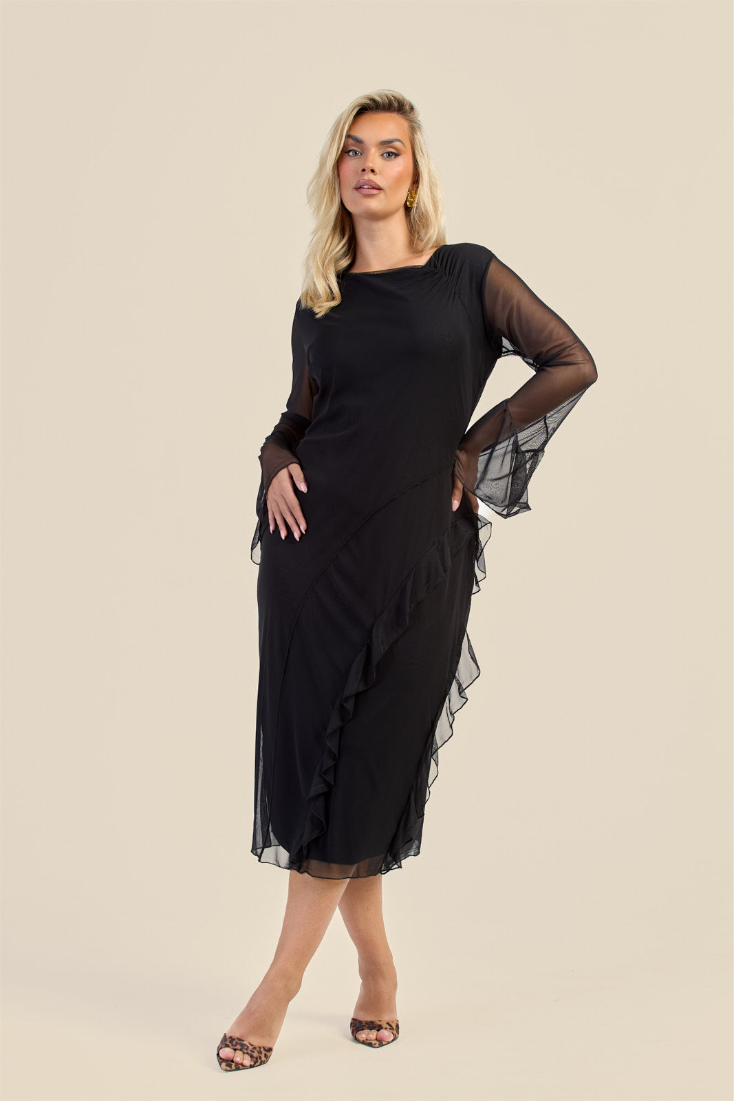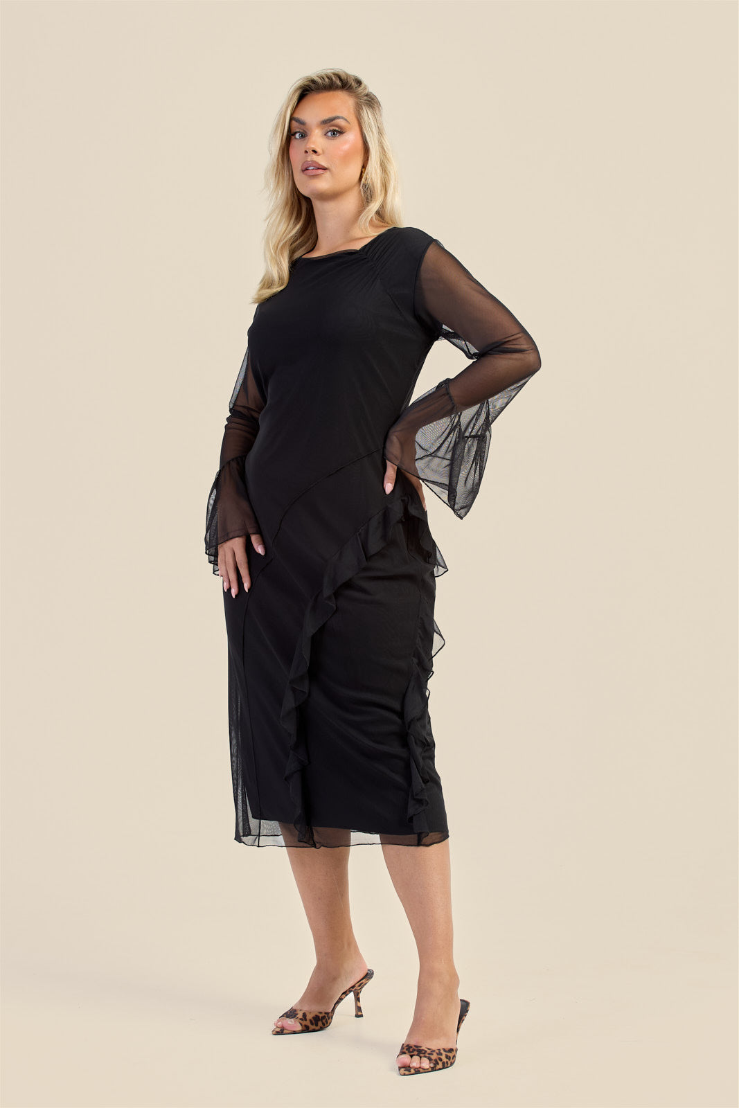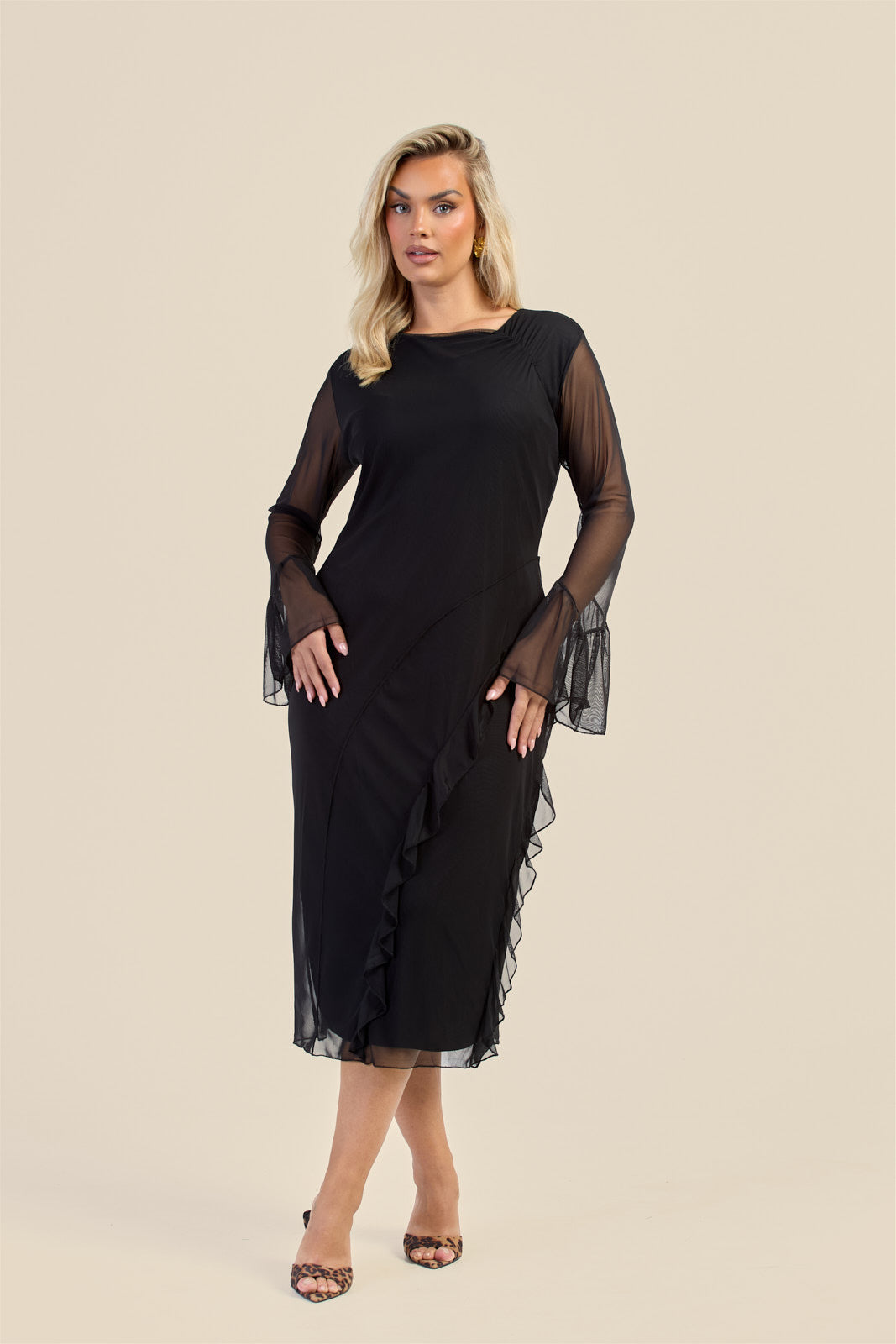 Add a flirty twist to your wardrobe with the Curve Mesh Ruffle Sleeve Midi Dress. Its delicate mesh fabric and playful ruffle sleeves create a light, breezy feel perfect for dancing the day away or turning heads at evening events. The midi length offers a chic balance of elegance and ease, making it a go-to for those who love a fun yet sophisticated style.