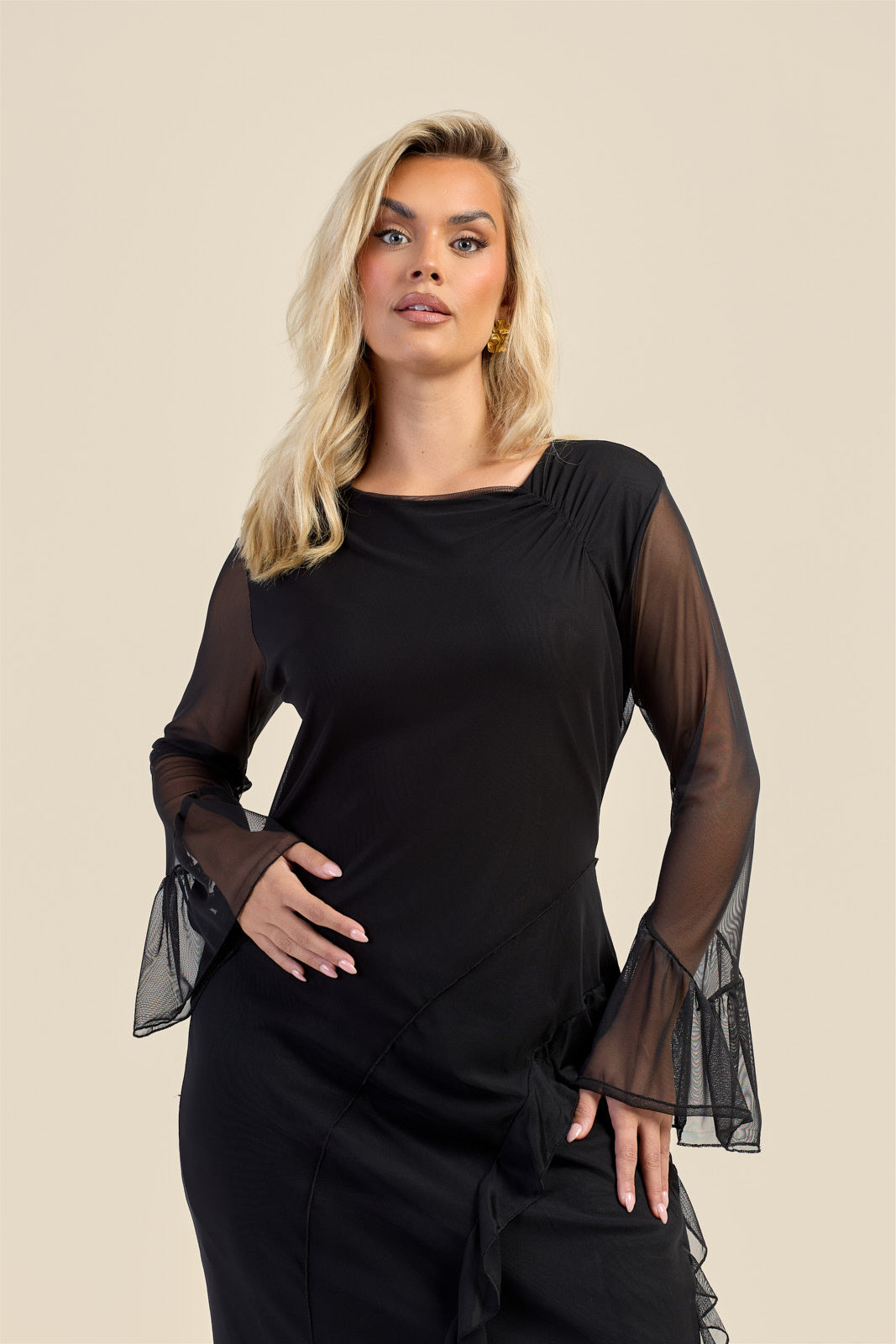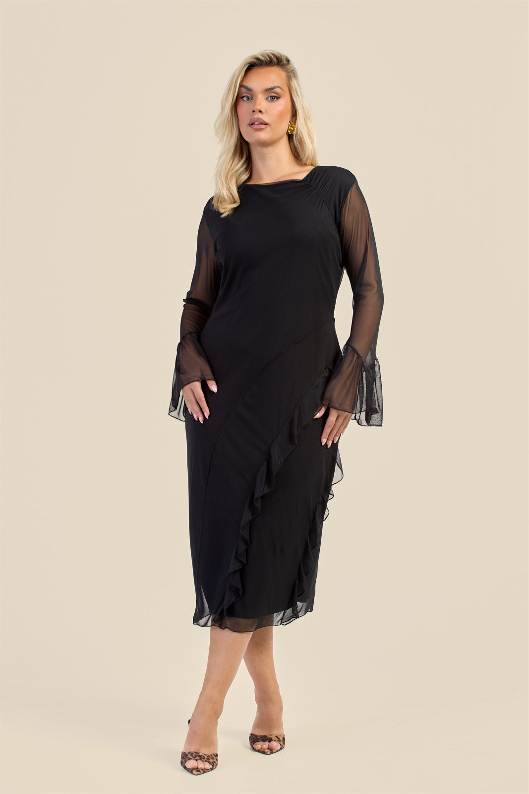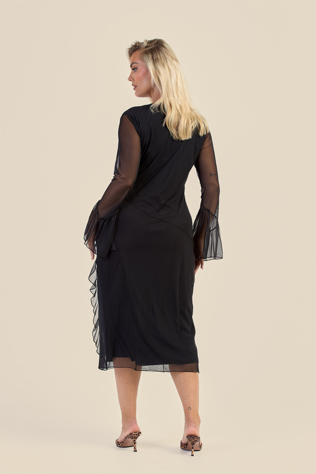 Add a flirty twist to your wardrobe with the Curve Mesh Ruffle Sleeve Midi Dress. Its delicate mesh fabric and playful ruffle sleeves create a light, breezy feel perfect for dancing the day away or turning heads at evening events. The midi length offers a chic balance of elegance and ease, making it a go-to for those who love a fun yet sophisticated style.