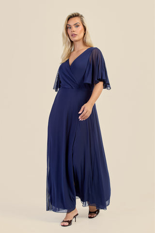 Curve Wrap Front Angel Sleeve Mesh Maxi Dress