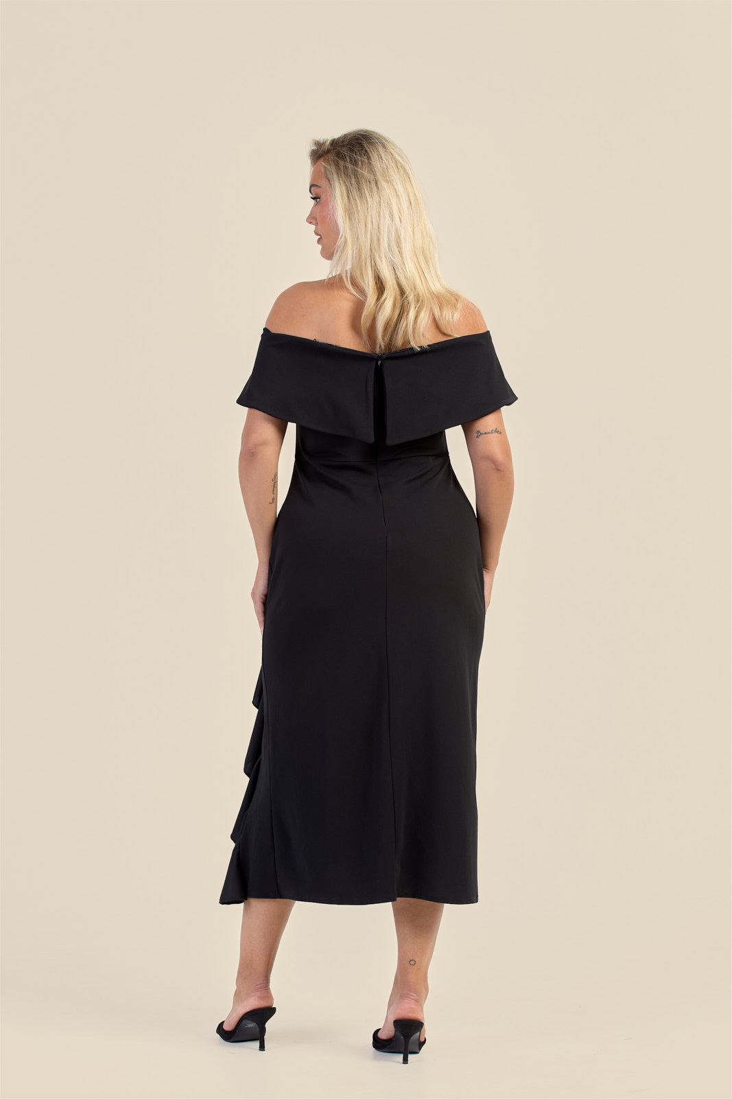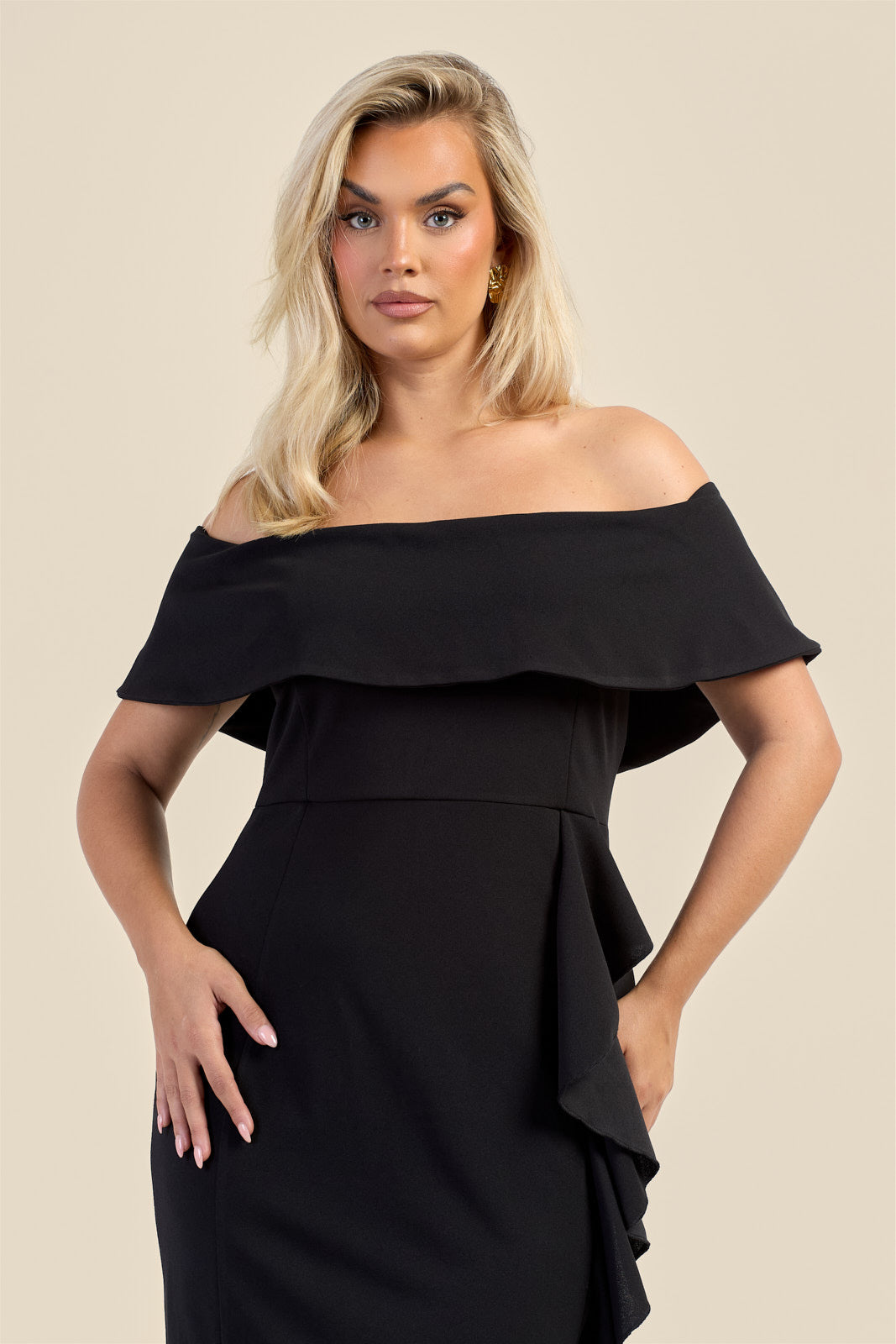 Be the life of the party in our sleek Curve Bardot Fold Over Scuba Crepe Ruffle Midaxi Dress. With its super sophisticated design, you'll feel confident and stylish all night long. Get ready to turn heads and make a statement!