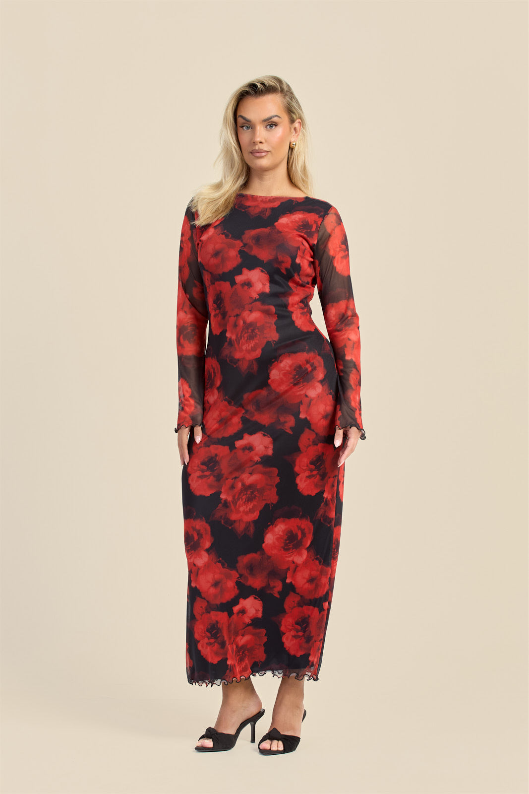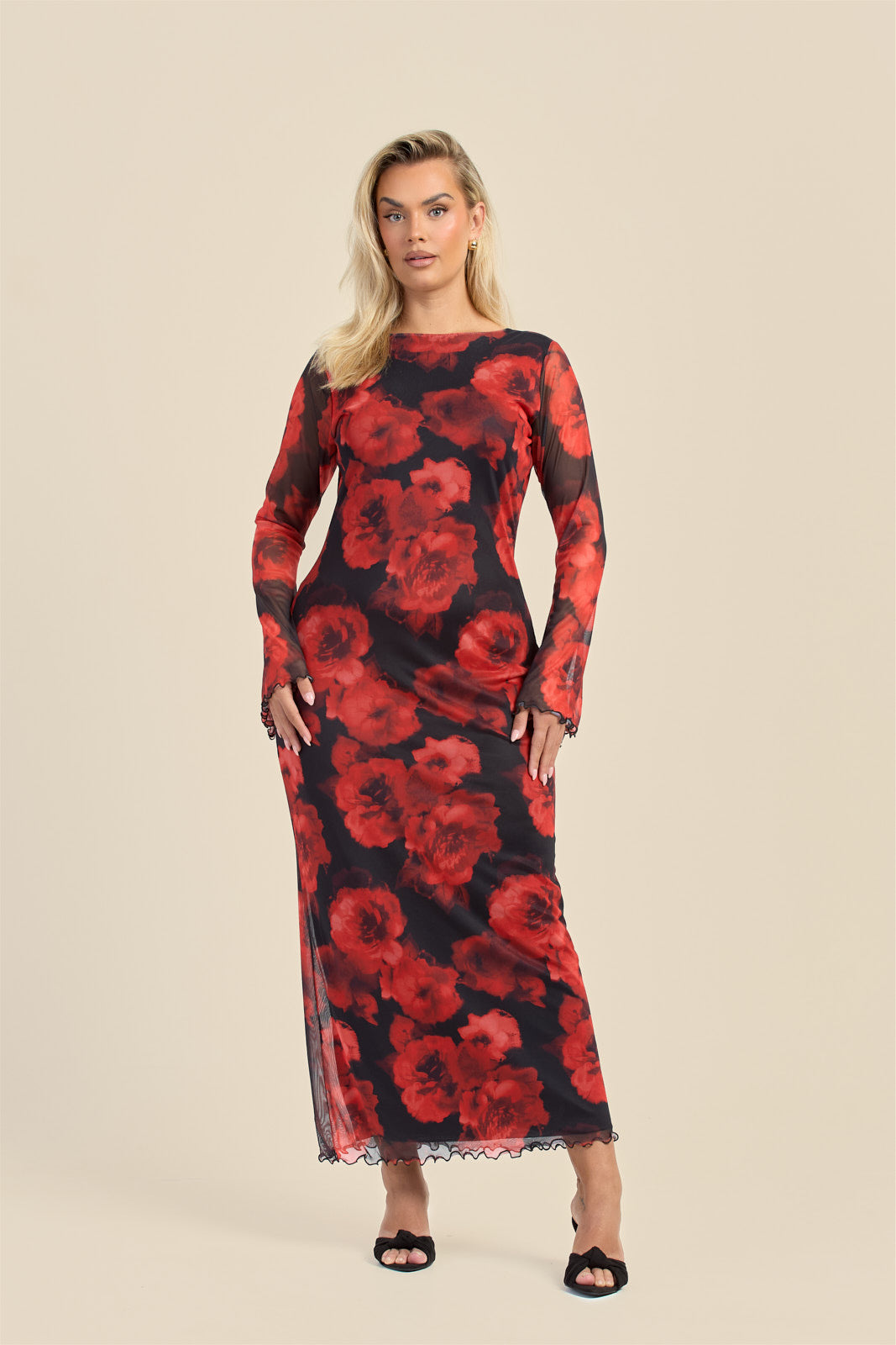 Introducing our best seller - the Curve Large floral flare sleeve mesh maxi dress! With its flowy fit and playful flared sleeves, this dress is sure to turn heads. Perfect for a day out or a special occasion, it's a must-have addition to your wardrobe.