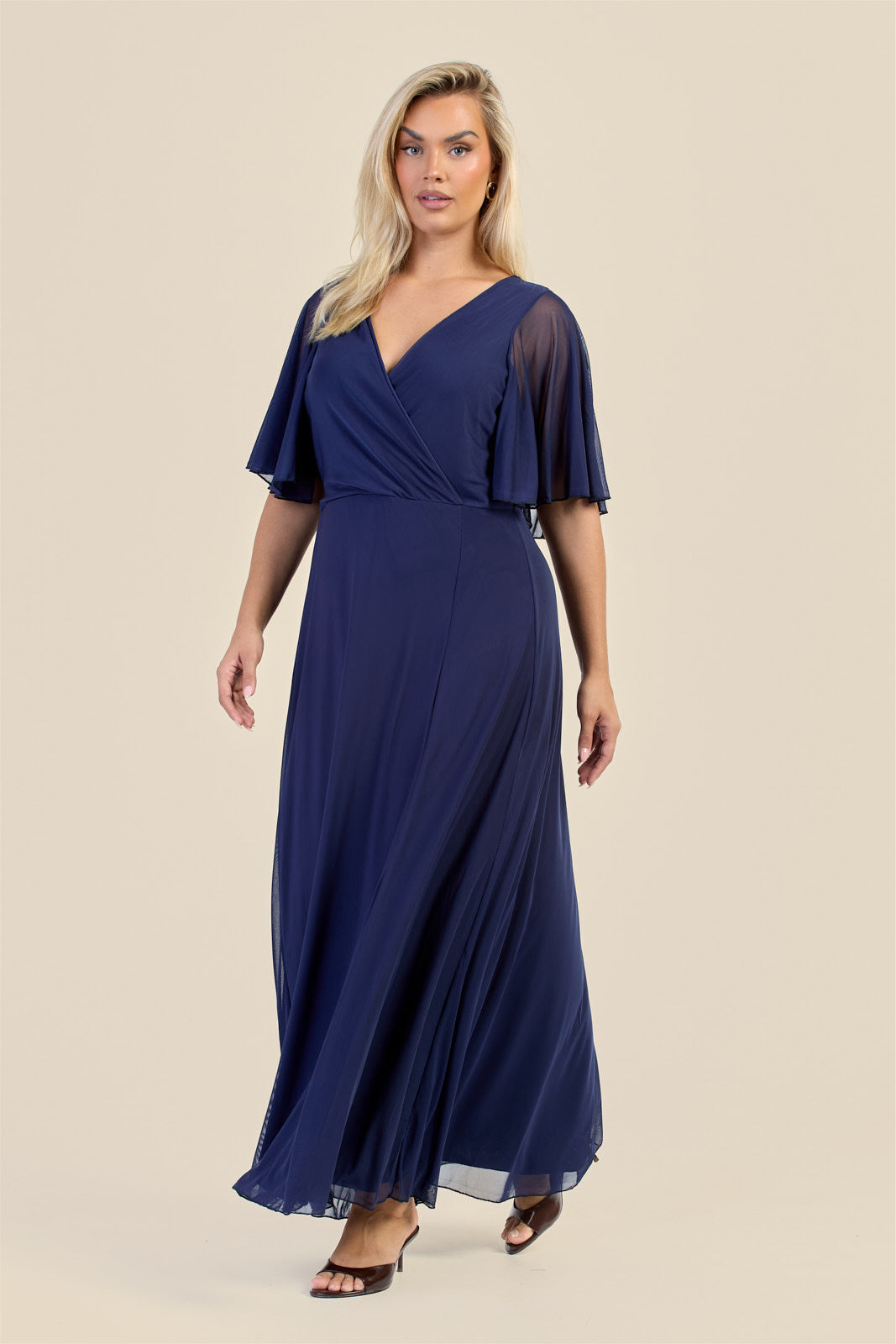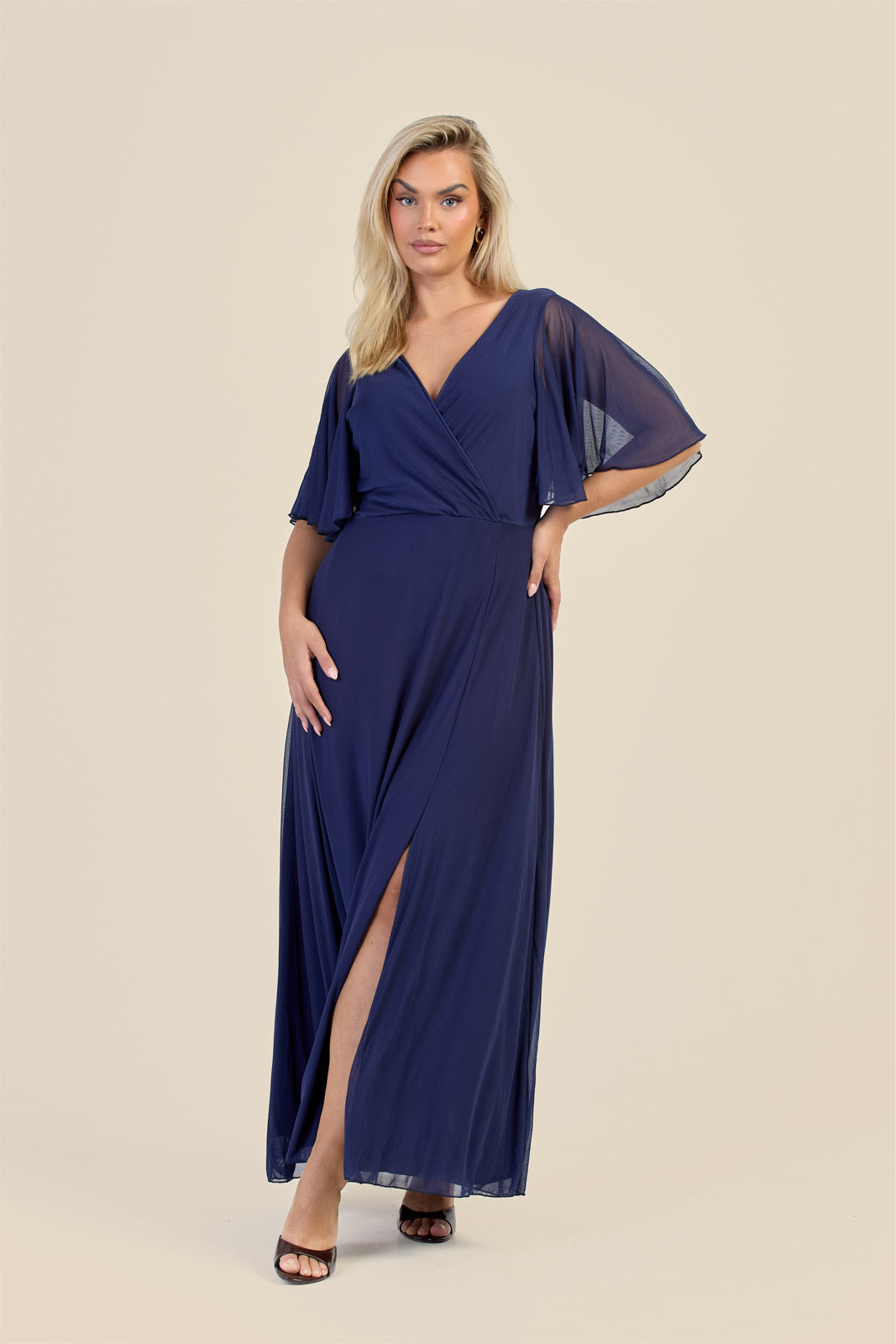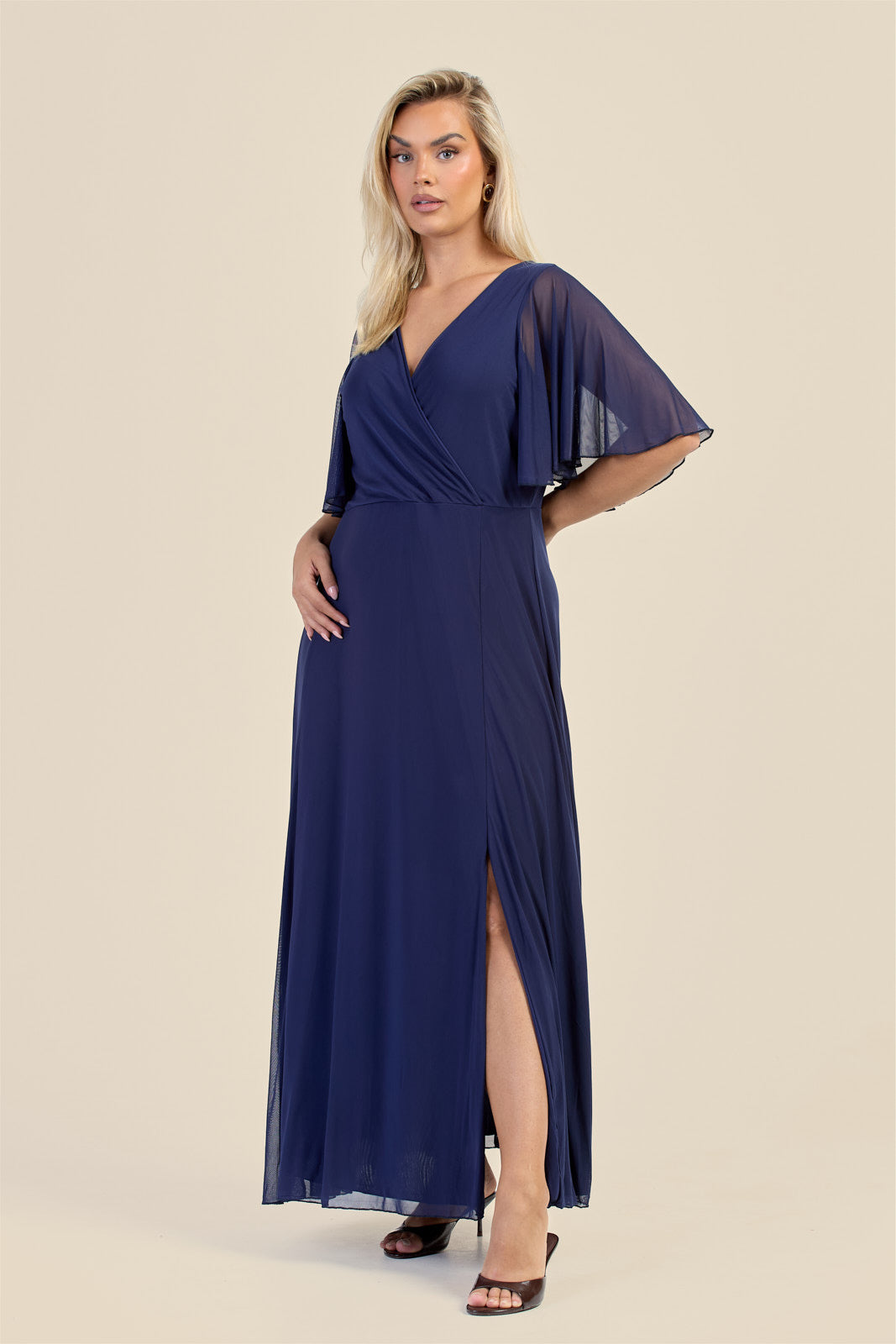 Step into elegance with a playful twist in this Curve Wrap Front Angel Sleeve Mesh Maxi Dress. Its flowing mesh fabric and angel sleeves create a dreamy silhouette, while the wrap front flatters your curves effortlessly. Perfect for turning heads, this maxi dress blends comfort with style for any occasion.