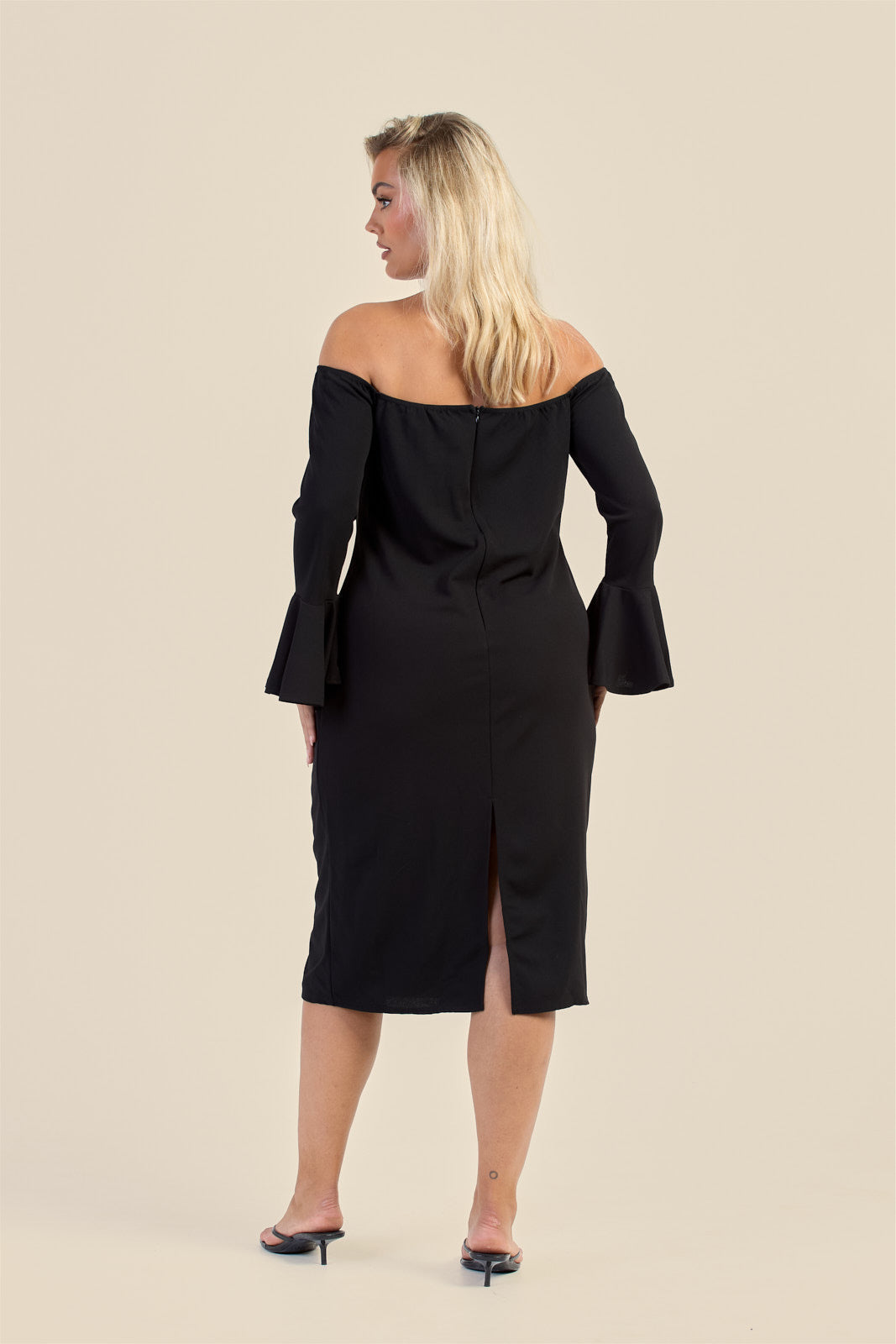 Step into the spotlight with the Curve Bardot Ruffle Sleeve Scuba Midi Dress! This flirty off-the-shoulder design highlights your curves while the playful ruffle sleeves add a fun burst of style. Crafted from smooth scuba fabric, it offers a comfortable stretch that moves with you—perfect for dancing the night away or stealing the scene on any occasion.